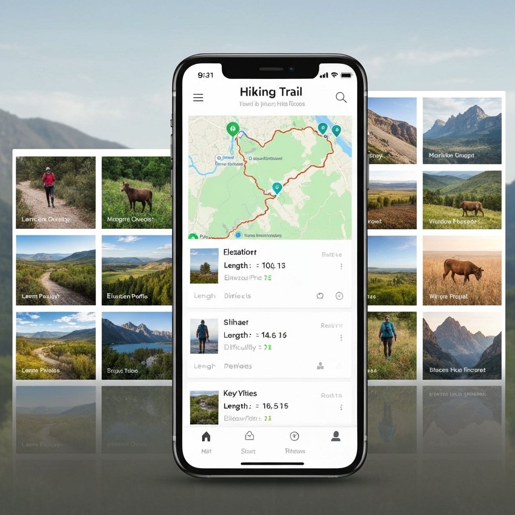 Detailed trail descriptions, difficulty ratings, estimated duration, and points of interest.